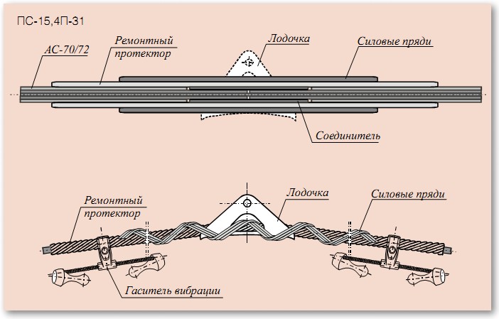 Для решения проблемы в ОАО «Тюменьэнерго» начиная с 1999 года ведется работа по усилению проводов и грозозащитных тросов с использованием защитных спиральных протекторов типа ПЗС, разработанных в ЗАО «Электросетьстройпроект», навиваемых на провод в поддерживающем зажиме, далее ПЗС на соединители типа СОАС, САС. С разработкой в 2002 году многочастотных гасителей вибрации типа ГВ («пешка»), начато их опытное применение в филиале «Северные ЭС».