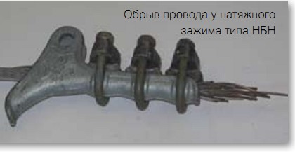 Без должной защиты вопрос повреждения проводов и тросов от вибрации это только вопрос времени. Из опыта эксплуатации срок службы проводов и грозотросов в Северном регионе составляет 12-15 лет. Повреждение проводов и грозотросов происходит в местах подвески и их соединения (поддерживающие и натяжные зажимы, соединители типа СОАС, САС), так как эти места являются концентраторами напряжений (по аналогии с курсом сопротивления материалов — местами заделки), а так же в тех местах, где разрушены гасители вибрации.