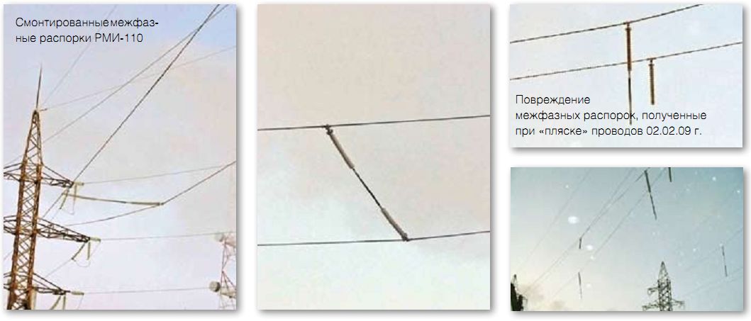 Для борьбы с «пляской» проводов пассивными средствами впервые в практике ОАО «Тюменьэнерго» в 2008г. применены межфазные изолирующие распорки, изготовленные предприятием ЗАО «Энергия+21» г. Южноуральск. Данные распорки установлены на линиях Ямбургского РЭСа в наиболее узких местах, где в 2006, 2007 и в начале 2008 года происходили отключения ВЛ именно по причине «пляски» проводов. Межфазные распорки применяются для удержания проектного расстояния между проводами фаз, проводами и грозозащитными тросами во время «пляски». Такая система призвана снижать амплитуду «пляски» проводов и связанные с нею динамические нагрузки на элементы ВЛ.