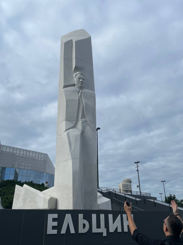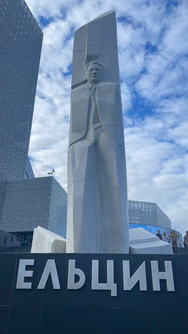 29 июл. 2024, 14:071Начать стоит даже не с билетика. Прямо перед входом стоит огромный памятник-стелла Ельцину. Мы все привыкли видеть памятники советским деятелям. Мы привыкли видеть памятники Ленину, Пушкину, Петру Первому и даже Ивану Грозному. Но огромная стелла с Ельциным выглядит устрашающе. Очень странный проект. Чем дольше смотришь - тем страшнее становится. Для меня лицо Ельцина здесь напоминает образ телекомпании ВИД