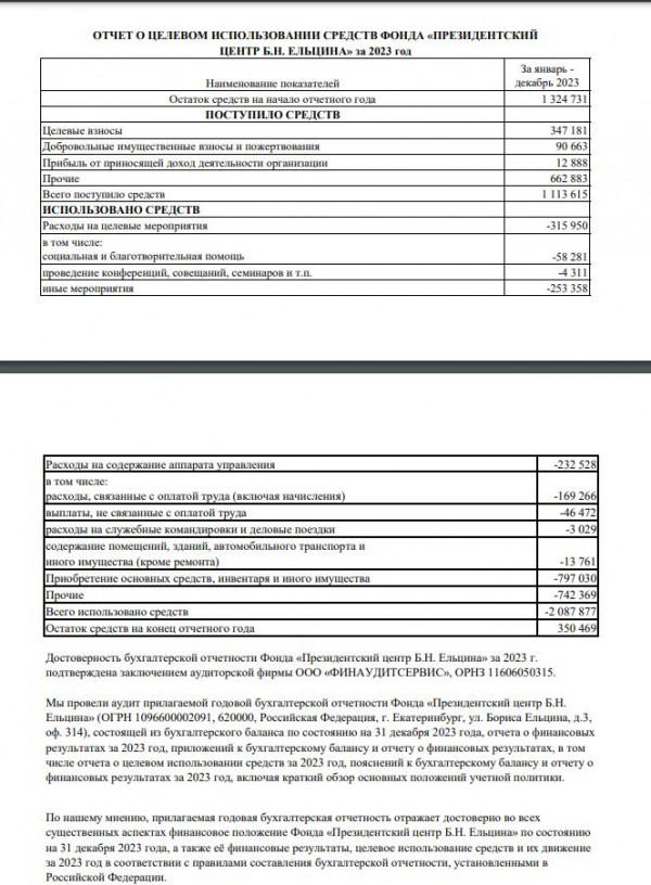 В год Ельцин Центр обходится в примерно 1,1 млрд руб. Какие-то взносы, и прочих 600 млн.руб))) Такие благотворители и попечители