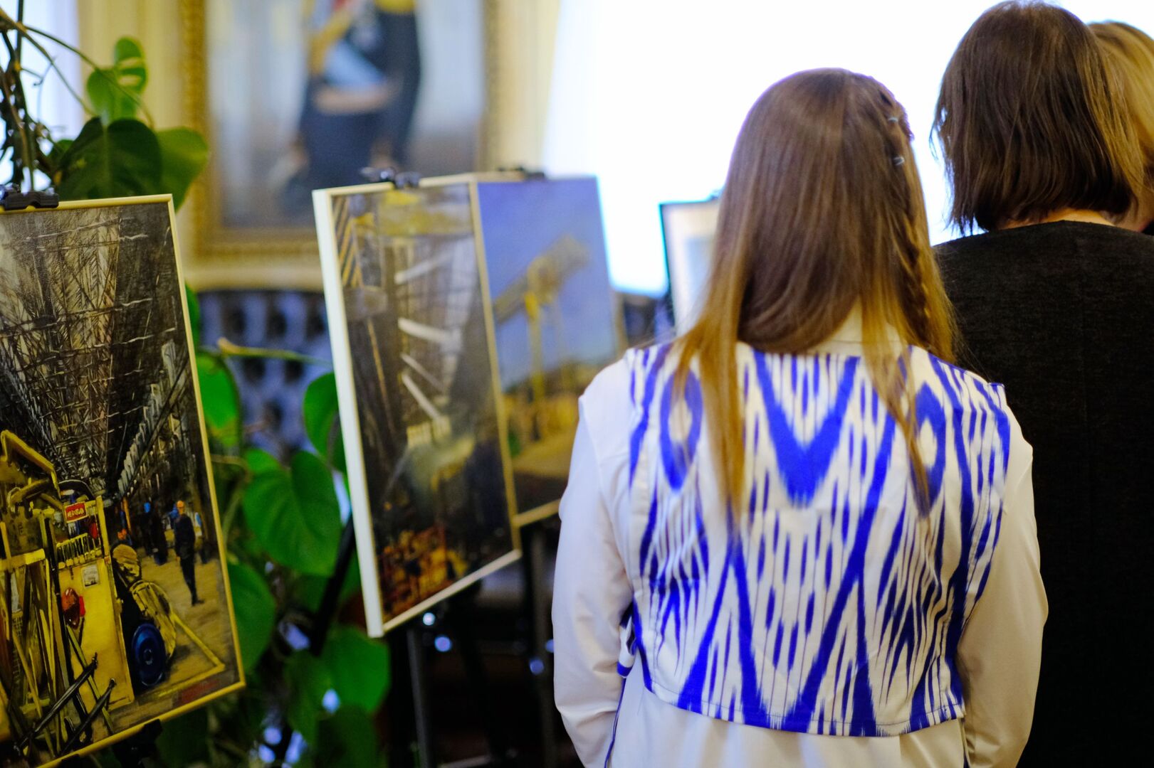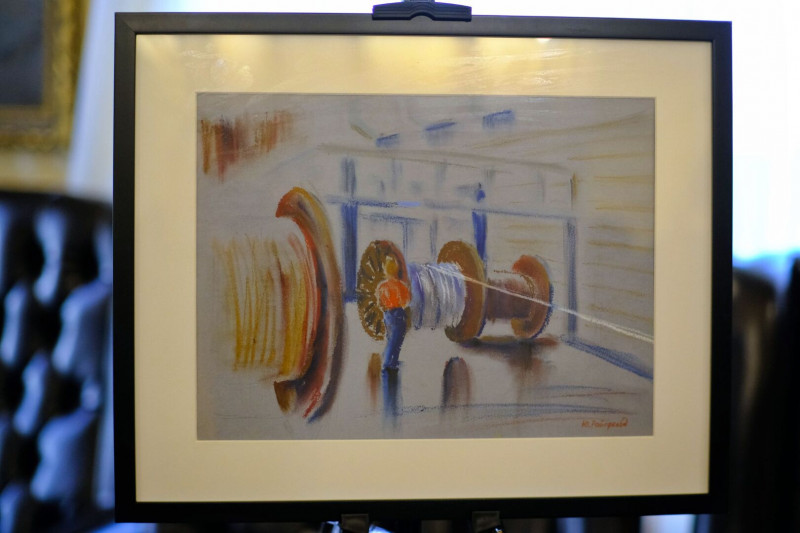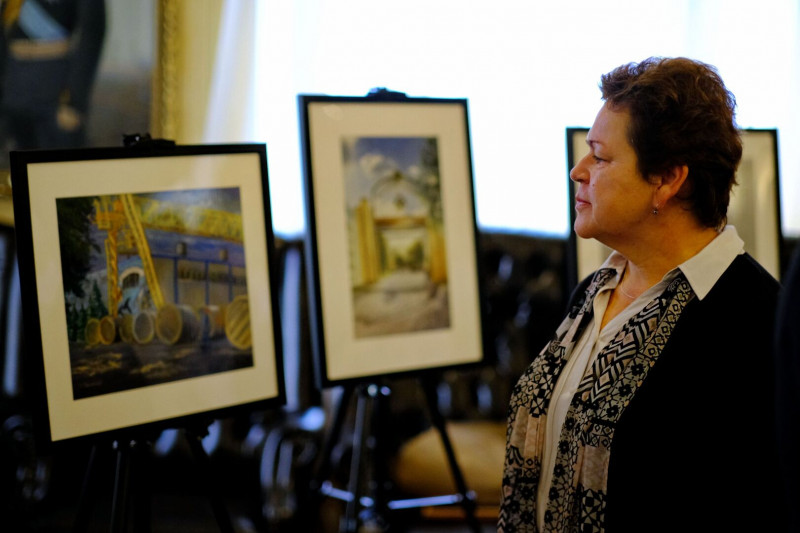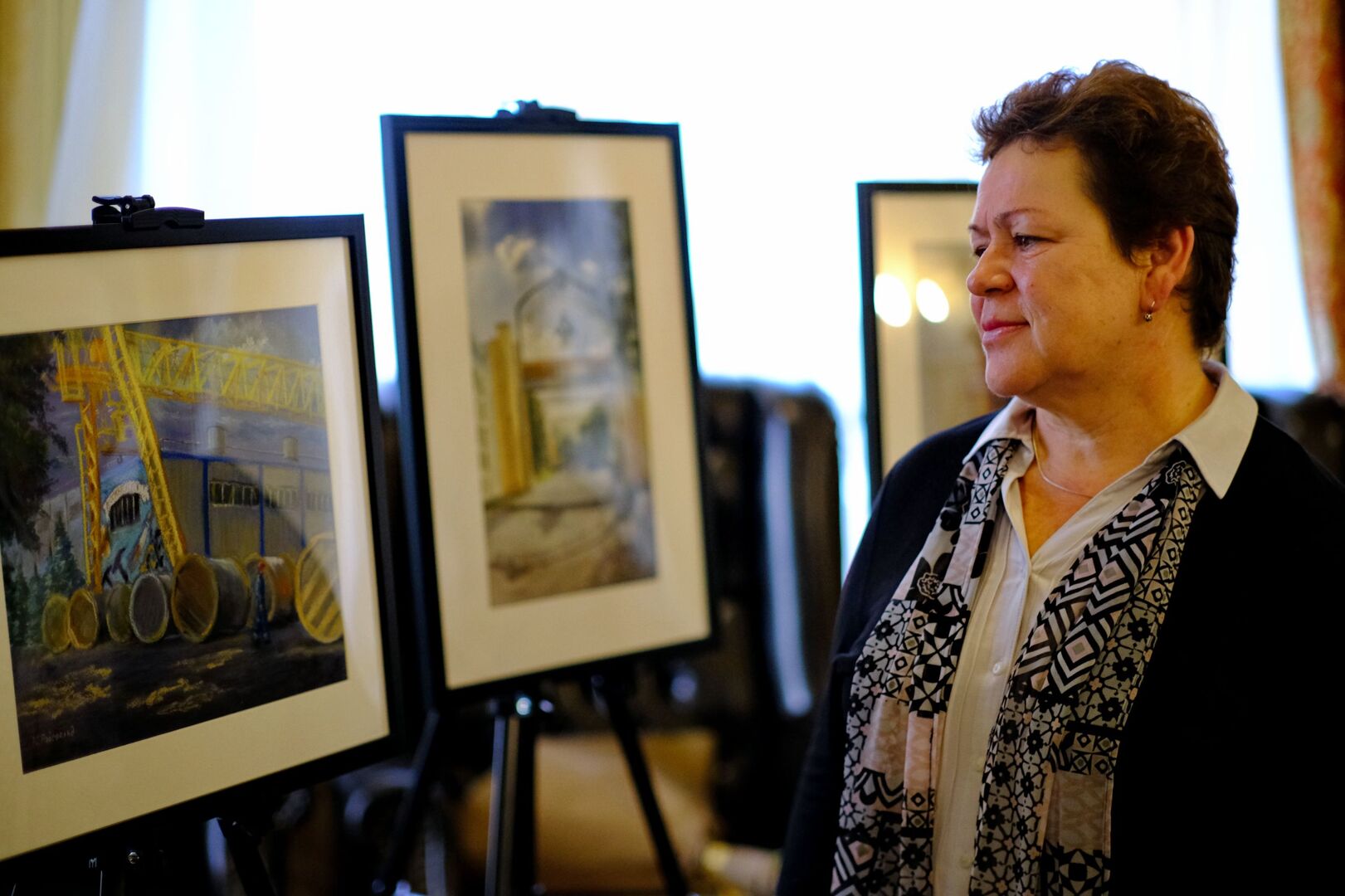 Выставка работ была совмещена с проведением торжественной церемонии вручения наград от Ассоциации "Электрокабель" и картины были буквально фоном для всей церемонии.