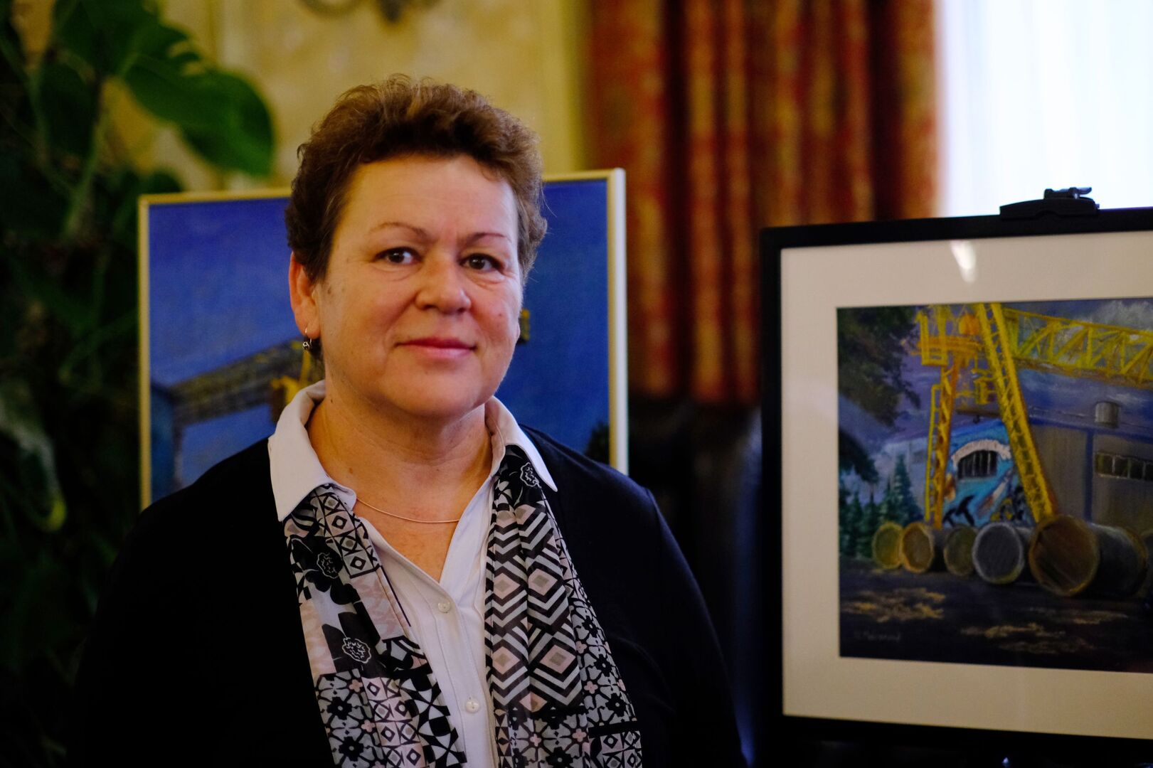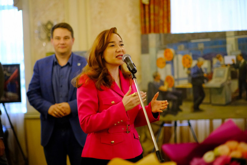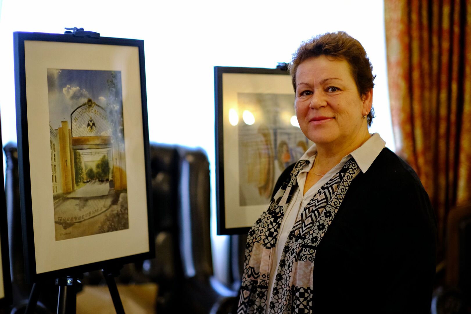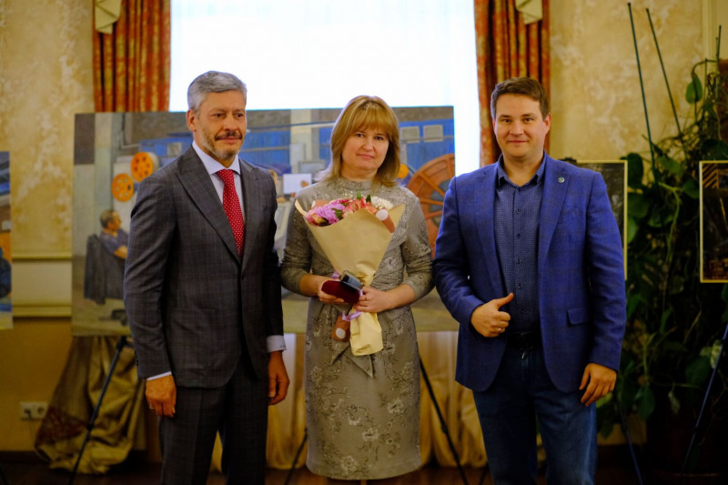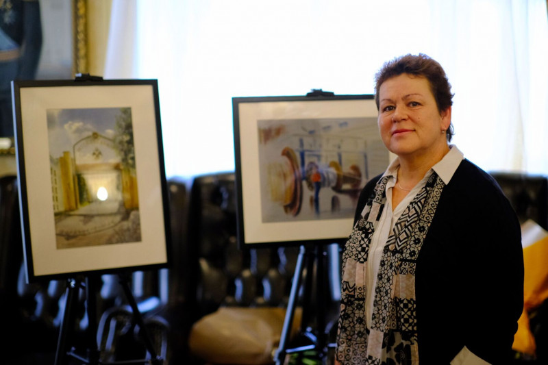 Выставка работ была совмещена с проведением торжественной церемонии вручения наград от Ассоциации "Электрокабель" и картины были буквально фоном для всей церемонии.