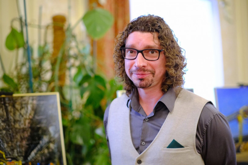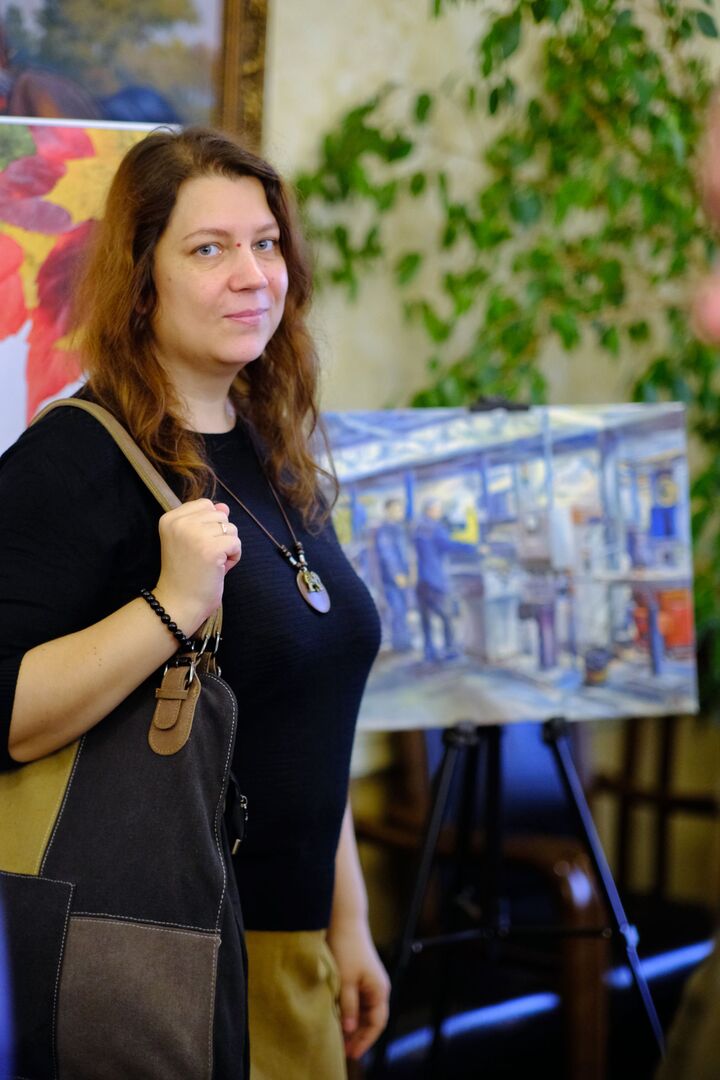 На некоторых фотографиях - сами авторы-художники позируют рядом со своими работами. Очень камерное мероприятие получилось.