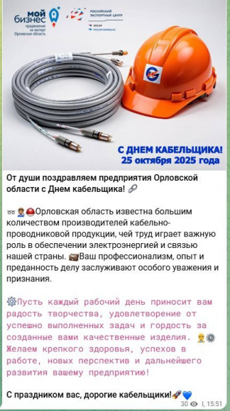25 окт. 2025, 16:021Поздравление от генерального директора КЗ "ЭКСПЕРТ-КАБЕЛЬ" Сергея Кутенева