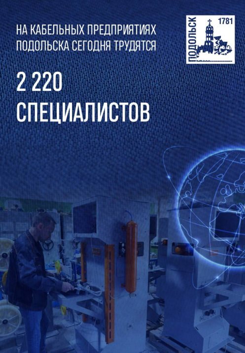 Кабельная промышленность — одна из важнейших составляющих экономики нашего округа. На территории Подольска успешно ведут деятельность 12 предприятий. В них трудятся более 2000