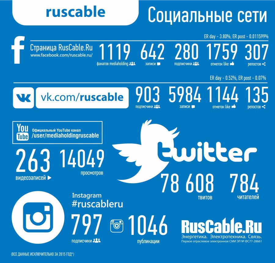 Подготовленный в декабре МЕДИАКИТ-2016 отлично презентует RusCable.Ru образца 2015 года. Нас можно охарактеризовать так: молодая, энергичная, открытая команда единомышленников, настроенных только на рост.