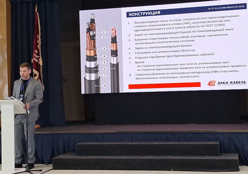 Илья Патрушев, руководитель направления «Стационарные кабели» ОКП «ЭЛКА-Кабель», представил доклад «Новые решения при проектировании кабельных линий на низкое и среднее напряжение». Он презентовал уникальную разработку ОКП «ЭЛКА-Кабель» – кабель ПАРМА. Это силовой кабель, с инновационной изоляцией, состоящей из электроизоляционного композитного материала. При его производстве применяются только отечественные материалы.