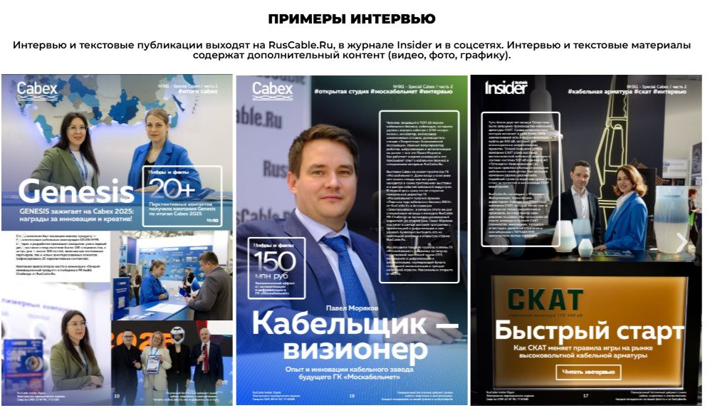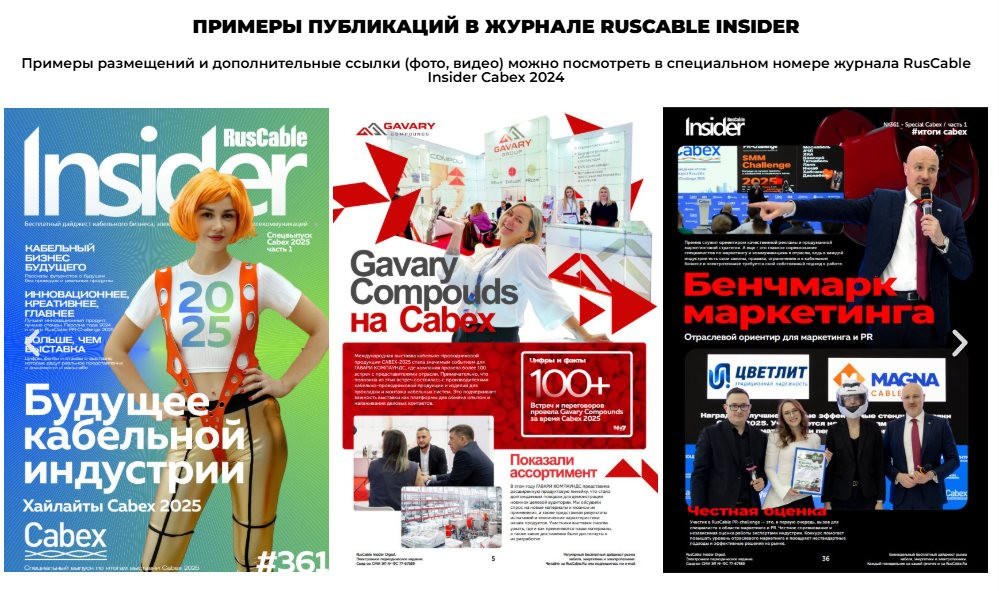 Портал RusCable.Ru уже много лет является генеральным информационным партнёром выставки Cabex и отлично понимает, что эффект от участия компании напрямую зависит от того, насколько заметным будет её промо. Внимание посетителей, новые контакты и продолжение диалога после выставки — всё это требует грамотной информационной поддержки. Поэтому отдел по продвижению RusCable Media совместно с редакцией портала разработал специальную акцию по информационной поддержке для компаний-участниц этого крупного делового события в марте 2026 года.