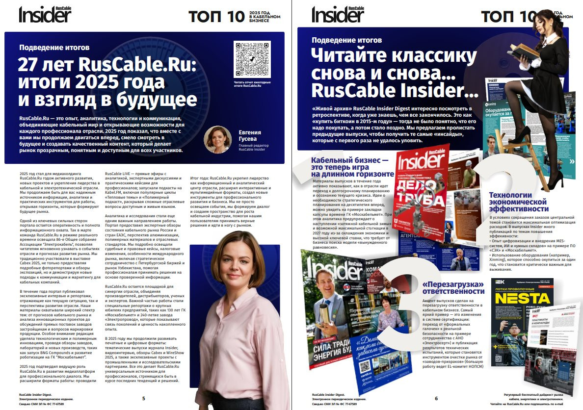 - 27-й год RusCable.Ru: итоги 2025 года и взгляд в будущее. Подведение итогов с Евгенией Гусевой.