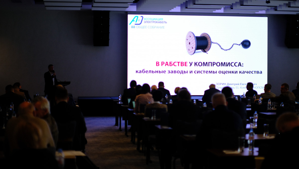 Руководитель EL-комитета Дмитрий Зорин выступил на 88 Общем собрании Ассоциации "Электрокабель" призвал к ужесточению мер ответственности производителей кабельного фальсификата, выступив с докладом "В рабстве у компромисса: кабельные заводы и системы оценки качества."