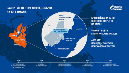 «Газпром нефть» обнаружила в арктической зоне Ямало-Ненецкого автономного округа месторождение с геологическими запасами 55 млн тонн нефти. Открытие подтвердило перспективы дальнейшего развития центра нефтедобычи компании на юге Ямала.