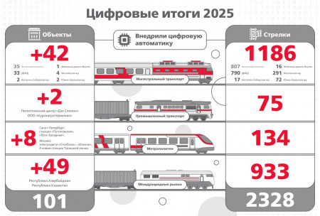 В 2025 году компании Нацпроектстроя оснастили российской цифровой автоматикой 101 объект рельсового транспорта в России и за рубежом.