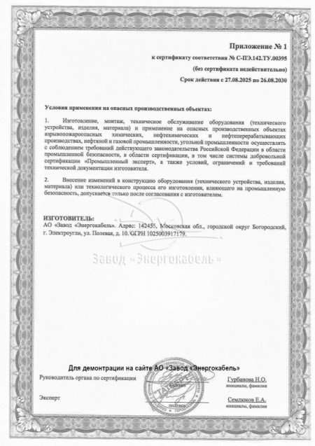 Завод «Энергокабель» получил сертификат промышленной безопасности для кабелей марки «ЭКАБ»
