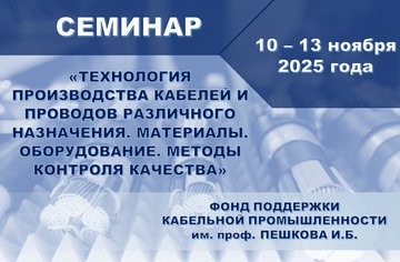 10 —13 ноября 2025 года НКО «Фонд поддержки кабельной промышленности им. профессора Пешкова И.Б.» планирует проведение семинара по теме: «Технология производства кабелей и проводов различного назначения. Материалы, оборудование, методы контроля качества».