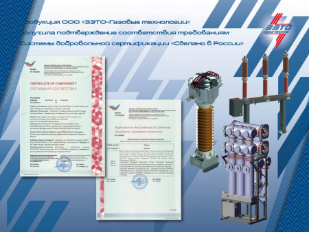 Сертификат распространяется на элегазовые колонковые выключатели серии ВГТ-110 и 220 кВ, комплектные распределительные устройства КРУЭ-110 и 220 кВ, а также на измерительные трансформаторы тока серии ТОГФ-11...