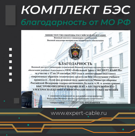 Кабельный Завод «ЭКСПЕРТ-КАБЕЛЬ» получил благодарность Министерства обороны РФ
