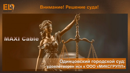 EL-Комитет сообщает, что 18 ноября 2025 года Одинцовский городской суд Московской области вынес решение по делу № 2-1409/2025, удовлетворив иск к ООО «МИКСГРУПП» (магазин «MIXTOOLS», ИНН 5032292436 на маркетплейсе Ozon) и обязав компанию прекратить реализацию некачественного кабеля торговой марки MAXI Cable (производитель ООО «МосГосКабель», ИНН 50...