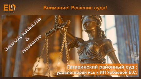 EL-Комитет НОПСМ сообщил о вынесении Гагаринским районным судом г. Москвы решения по делу № 02-3481/2025. В конце ноября 2025 года суд удовлетворил иск к ИП Урбаевой В. С. (магазин «Вегос-М», г. Улан-Удэ) и обязал ответчика прекратить реализацию фальсифицированного кабеля «торговой марки-призрака» ЗАВОД КАБЕЛЬ и NoName (производитель не установлен)...