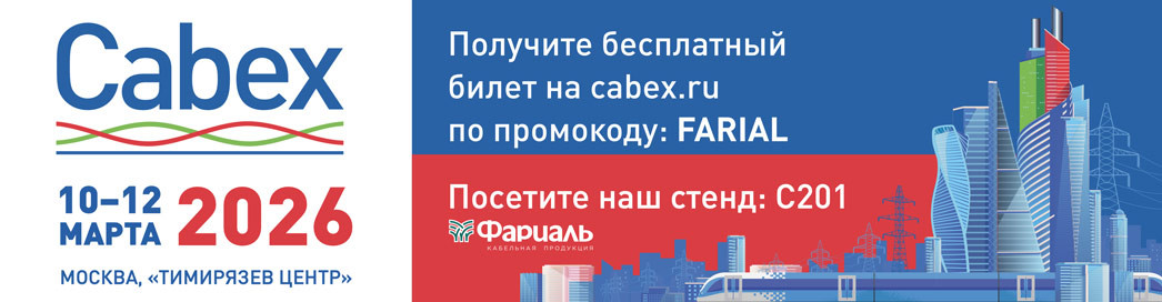 С 10 по 12 марта 2026 года НПО «Фариаль» примет участие в международной выставке кабельно-проводниковой продукции Cabex-2026, которая пройдет в Москве, в выставочном центре «Тимирязев Центр».
